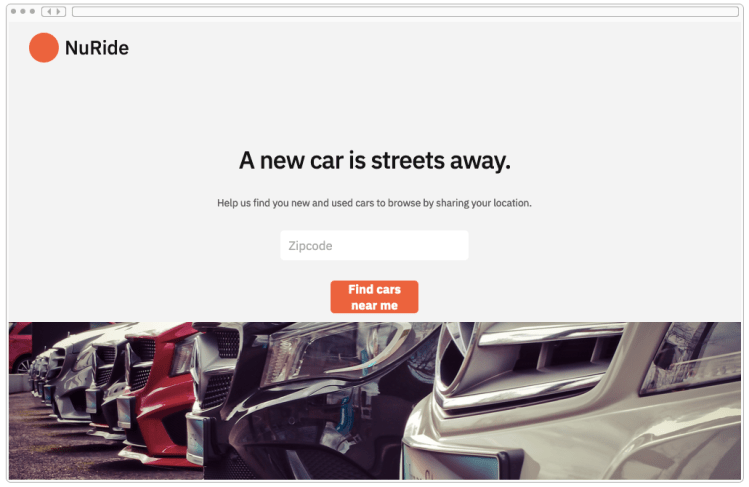 - Scenario: The user is trying to view a website to help them buy a car. But, the content can’t load without the user’s location. They need to enter their ZIP code and first name.