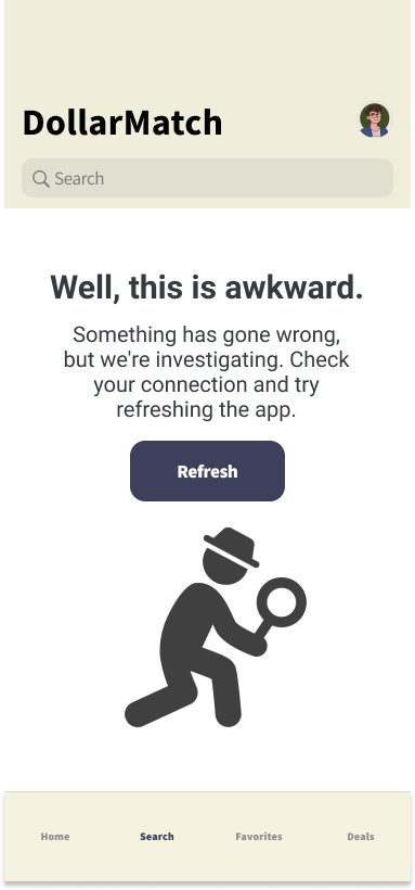 I’ve invited the user to help the app by reminding them to refresh the app. While many users can pull-to-refresh on mobile, I flagged it with the button as well. I’ve also asked the user to double-check their Internet connection just in case as well.